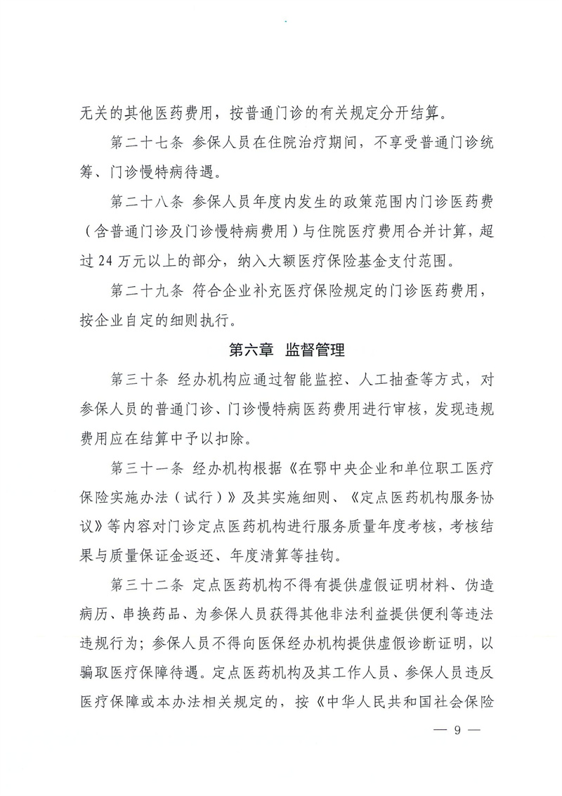 关于印发《在鄂中央企业和单位职工医疗保险门诊统筹实施办法(试行)》的通知(鄂医保发[2021]67号)-医保政策-荆门市中医医院 荆门市石化医院