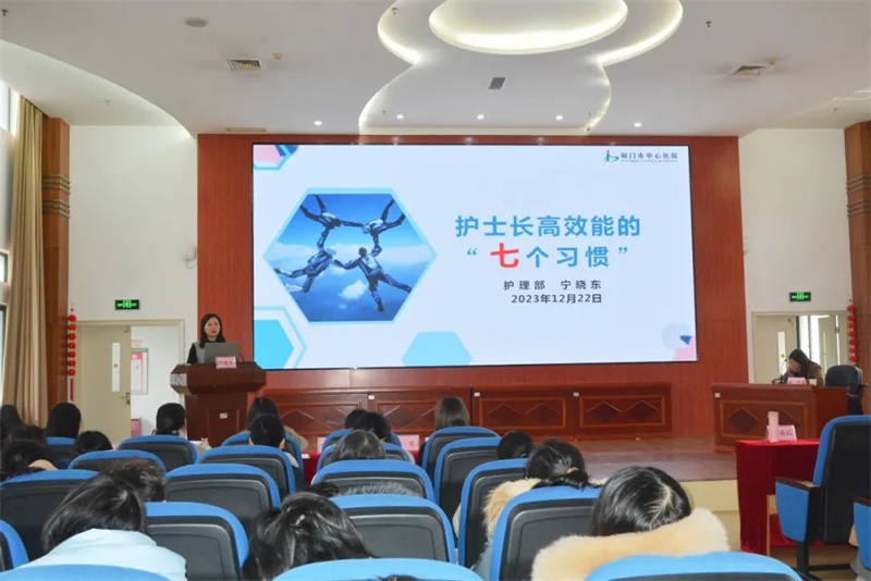 培训环节由钟祥市中医医院党委委员杨芹、京山市中医院护理部主任邓万霞、市中医医院护理部副主任马蔚蔚主持,共安排五项培训授课。市中心医院护理部主任宁晓东讲授《护士长高效能的七个习惯》,以央视报道的护理精英姜小鹰、蒋艳等人的感人故事开篇,引导学员爱岗敬业、做有追求的护理工作者;市人民医院护理部主任艾华聚焦实现全院VTE同质化管理,讲授《VTE规范化防治的构建与实施》;市中医医院护理部主任刘琴以《强化核心能力培养,推进中医护理临床实践》为题,分享了中医护理人才的培养路径;市中医医院副院长杨燕妮围绕《中医适宜技术在失眠中的应用》,详细讲解了相关知识和临床实践案例;市中医医院特色疗法中心主任袁小红现场演示舌诊、辨证,并实操展示了头部全息刮痧和第二掌骨刮痧技术。