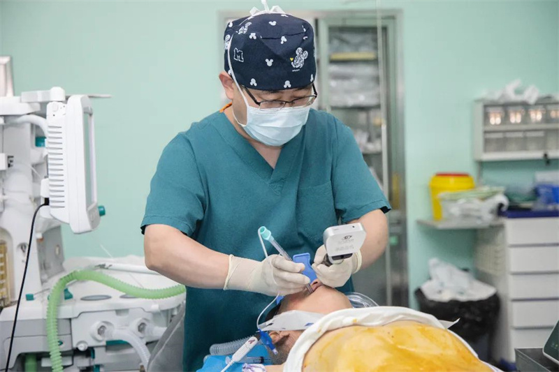 在麻醉科工作了20个年头,肖志强在临床麻醉和重症监护等方面打下了扎实基础,为此他付出了常人难以想象的时间和精力,遇到危重患者手术,他总是提前一天对患者进行访视,然后开会评估,术前他会第一时间赶到患者身旁,用亲切的话语和专业的职业素养为患者护航。肖志强说:“麻醉医生要严密观察病人的每一项生命体征,尤其是重大手术病人,一瞬间的刺激都会发生很大的波动,精准的判断和用药,才能把波动平稳下来,在手术中麻醉医生不能离开半步,经常要陪着外科医生站完一台手术。”每天处于高戒备状态,每一个细节亲力亲为,有时候一台手术持续五六个小时,甚至十几小时,所以午饭时间不确定,经常是在两台手术之间赶紧把饭吃了,即便是下午四五点钟吃午饭,也是常事。每当看到患者平安地从手术室出去苏醒,患者平安了,他却经常累得在休息室的椅子上睡着了。