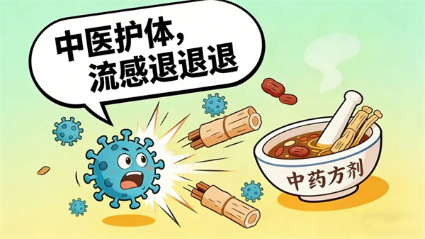 针对流感“易感染人群”,本方清热解毒、辛凉透表,兼能生津利咽。可清解内热、透散外邪固护肺卫,适用于疫毒袭表之证的流感预防。
