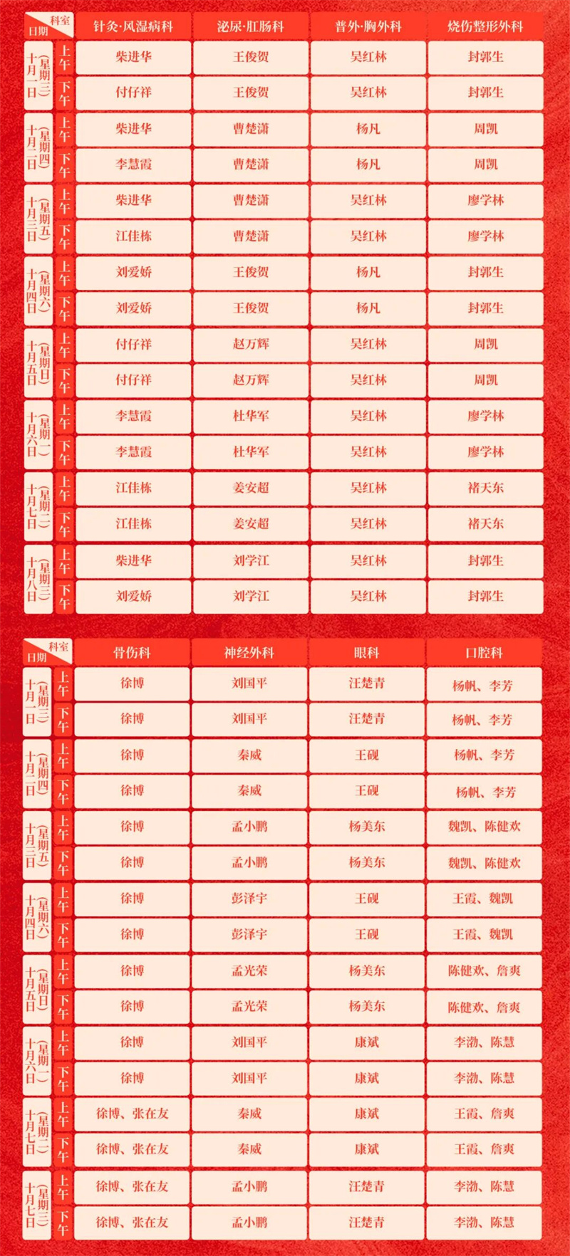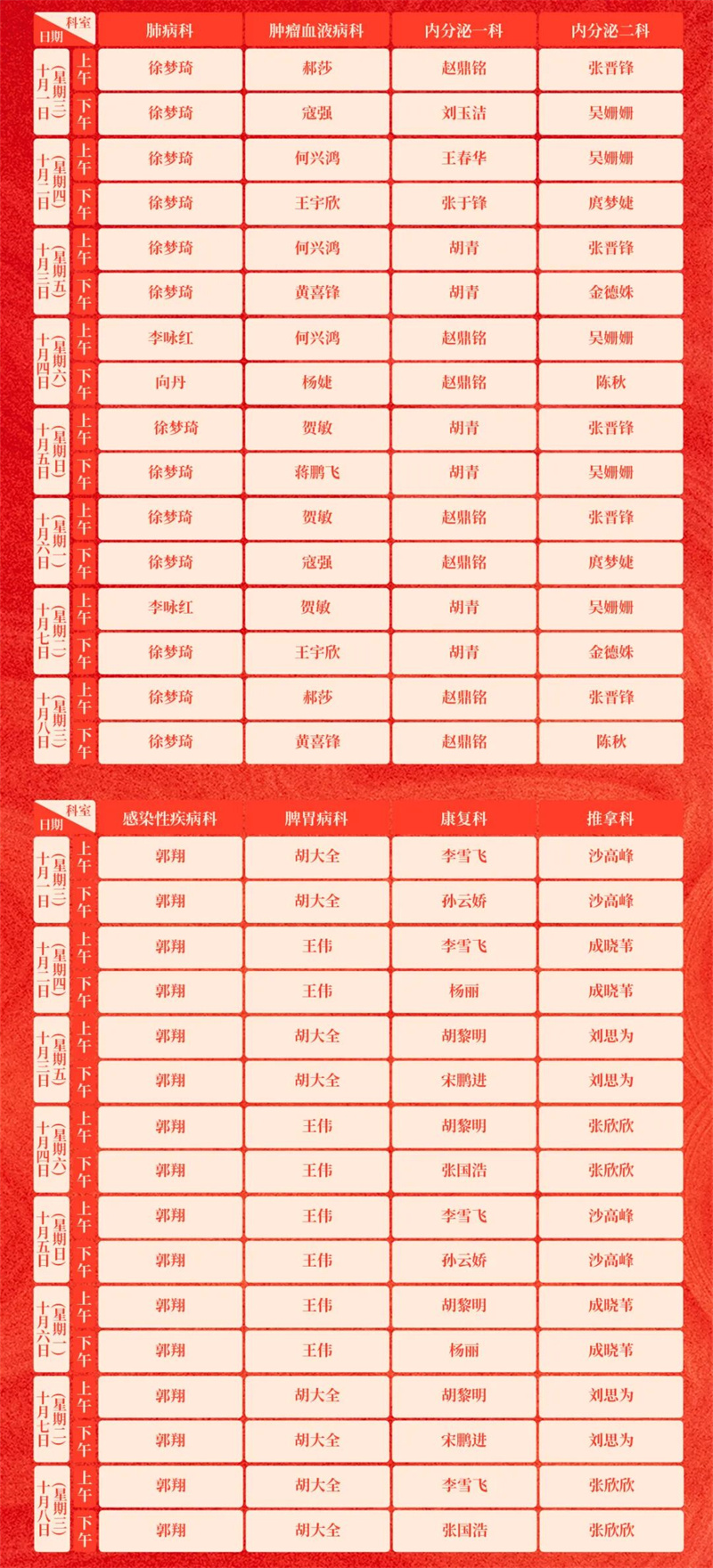 通知 | 荆门市中医医院2025年国庆节假期排班表→