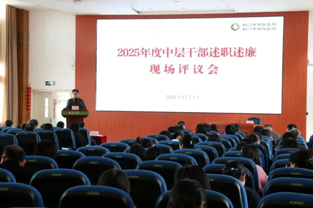 为进一步提高全院中层干部履职能力,增强干部责任感、使命感,荆门市中医医院于12月1日、11日、15日分三场召开2025年度中层干部述职述廉现场评议会。医院全体领导班子成员、各职能科室负责人、各临床医技科室负责人及护士长、各党支部书记等共计100余人参会。会议由医院党委委员、副院长黄昌毅主持。